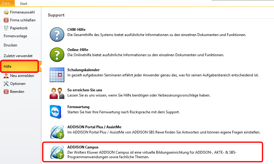 ADDISON AKTE: Über das Menü Hilfe | ADDISON Campus werden Sie direkt auf die Aktivierungsseite in ADDISON Online weitergeleitet.